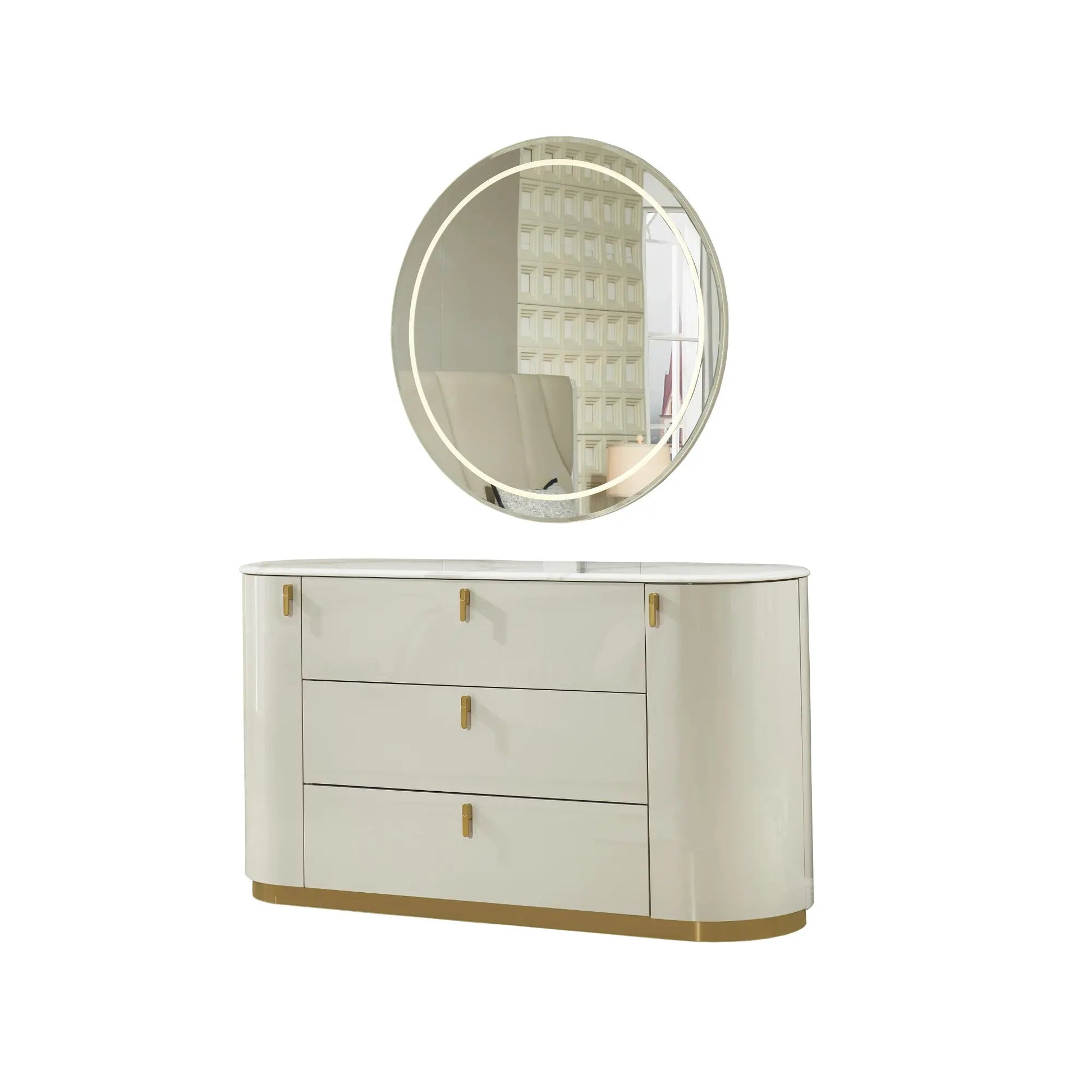 - Miroir LED ovale : La commode est généralement associée à un miroir ovale élégant doté d'un éclairage LED intégré,