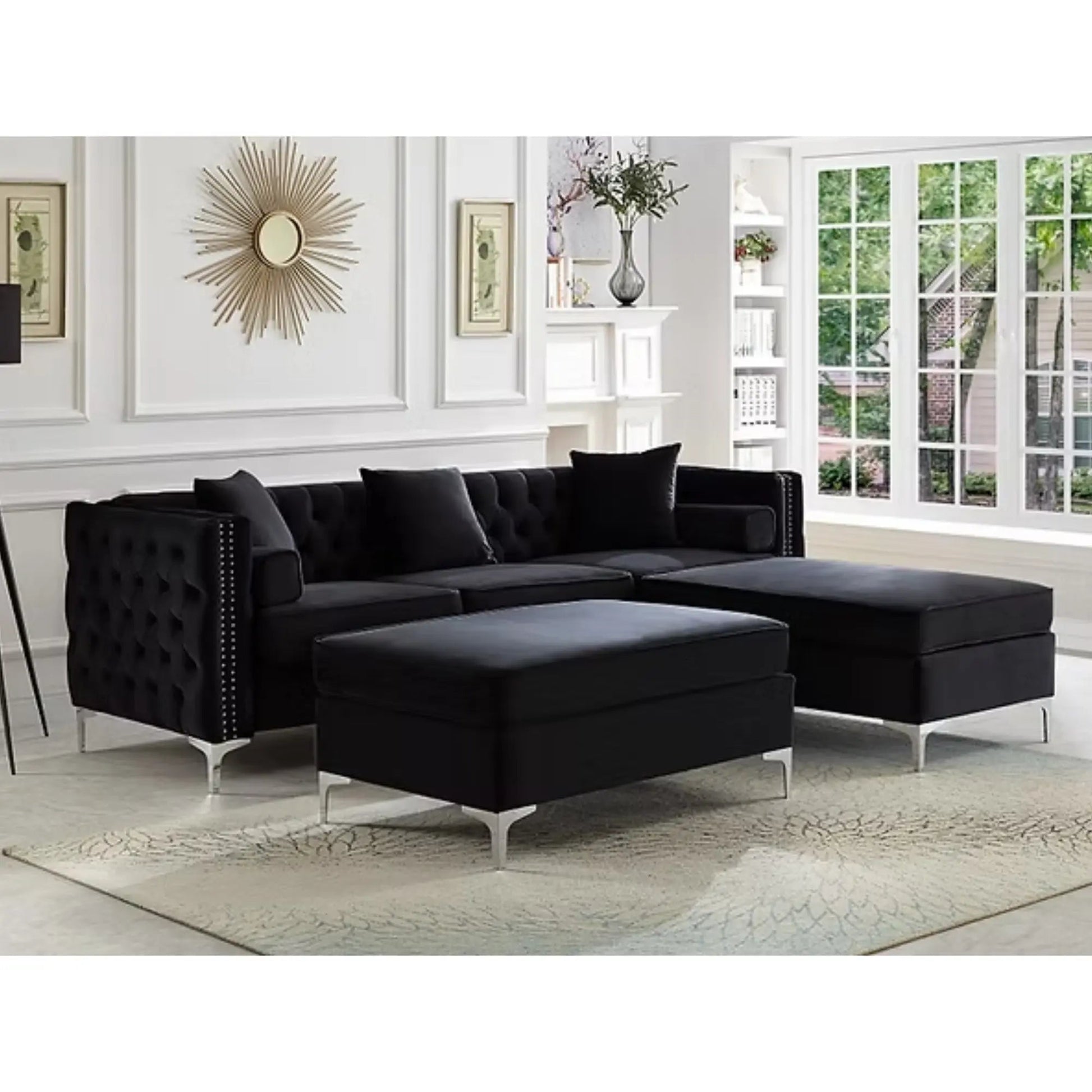 - Canapé sectionnel réversible en velours noir