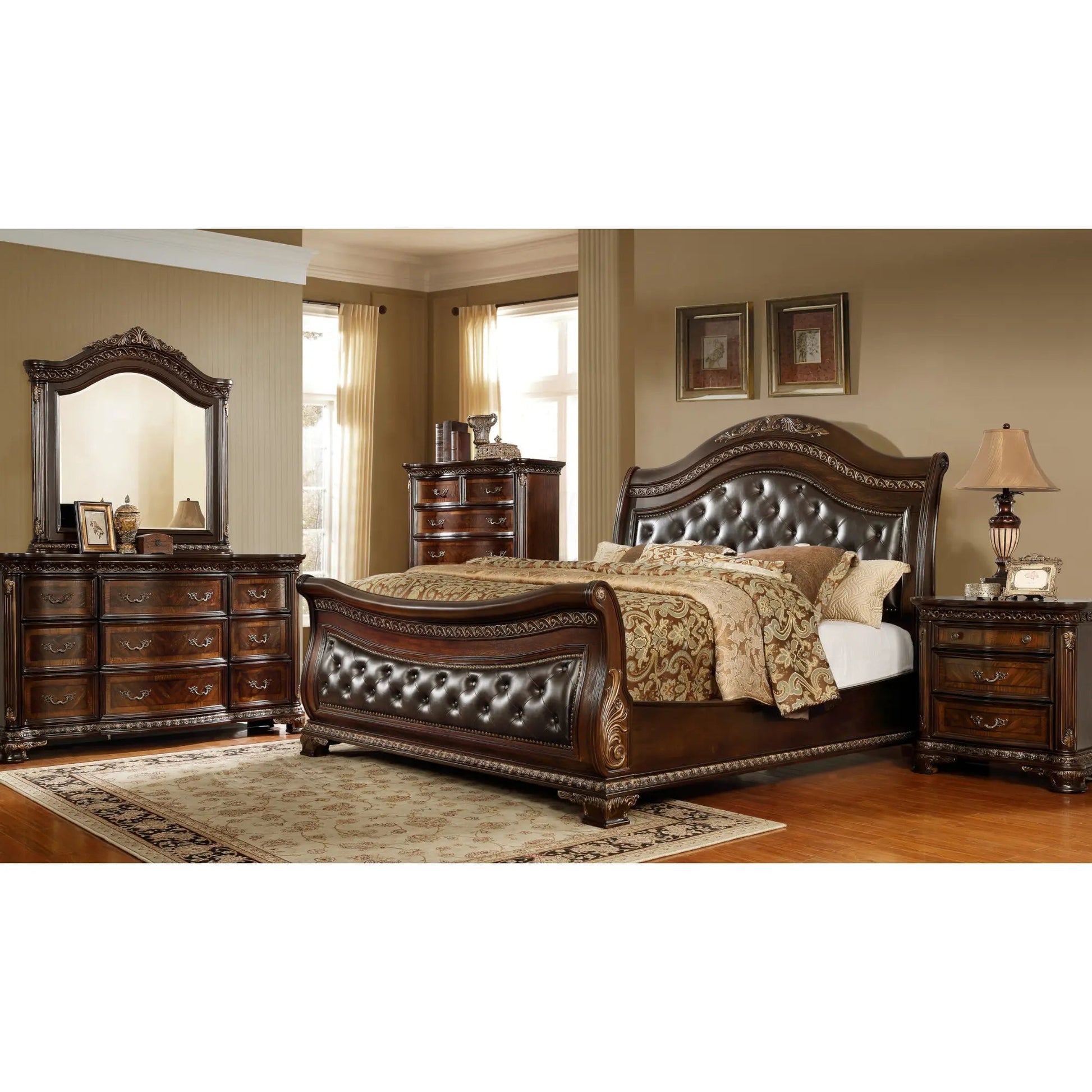 Apportez chaleur et sophistication à votre espace avec cet ensemble de chambre à coucher classique en bois, conçu pour une beauté et un confort durables. Avec ses riches tons de bois, ses détails raffinés et son savoir-faire artisanal robuste, cet ensemble apporte une touche de charme traditionnel à toute chambre. Avec ses nombreux rangements et son design intemporel, il allie parfaitement style et fonctionnalité, créant un havre de paix chaleureux et accueillant pour les années à venir.