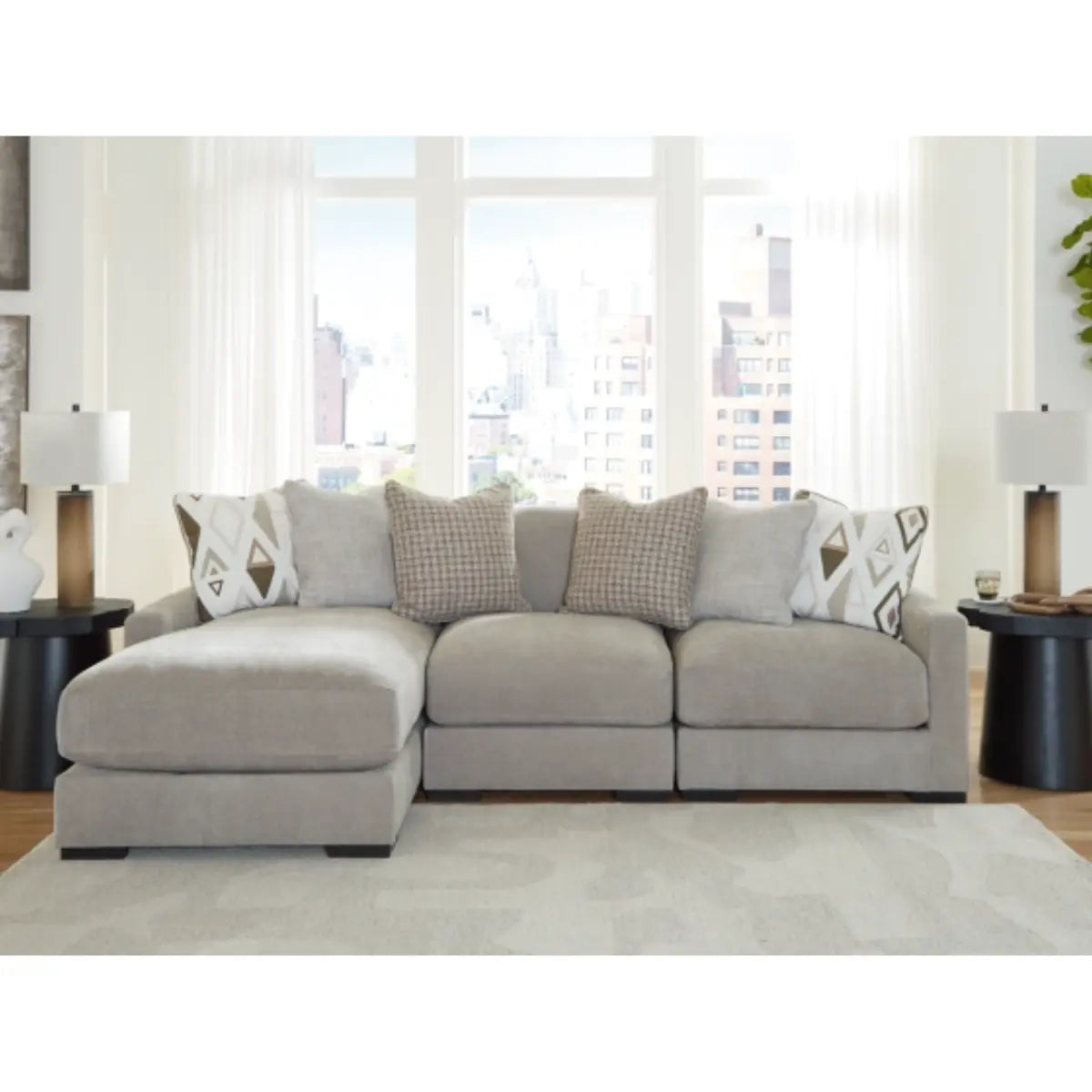 Confort contemporain et personnalisable. Ce canapé d'angle modulable avec méridienne s'adapte à vos besoins. Vous pouvez l'agencer à votre guise, que ce soit pour regarder la télévision en famille, recevoir des invités ou simplement rafraîchir votre intérieur. Sa teinte neutre, qui s'harmonise avec tout, ajoute à sa polyvalence. Et pour votre détente, des coussins d'assise en mélange de plumes ultra-moelleux complètent son design haut de gamme.