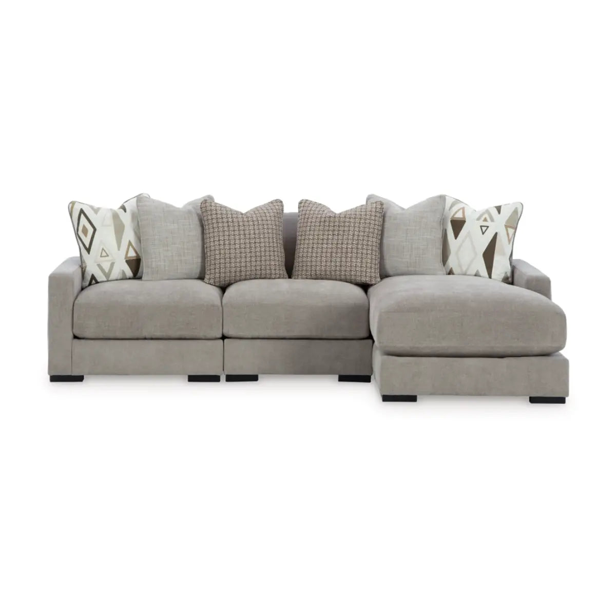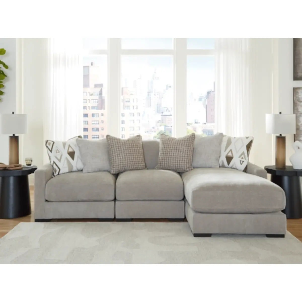 - Comprend 3 pièces modulaires : chaise d'angle avec accoudoir gauche, chaise sans accoudoirs et chaise longue d'angle avec accoudoir droit