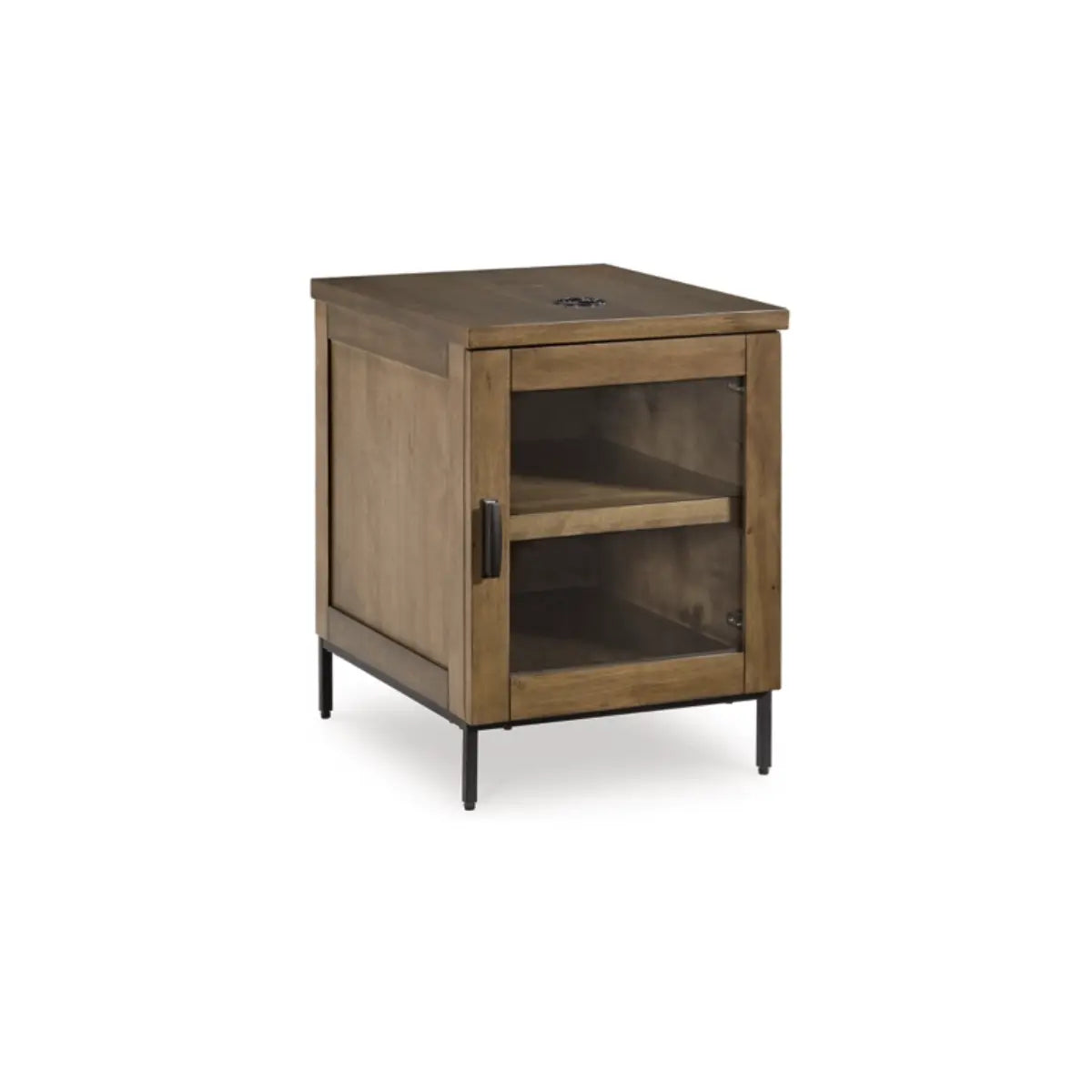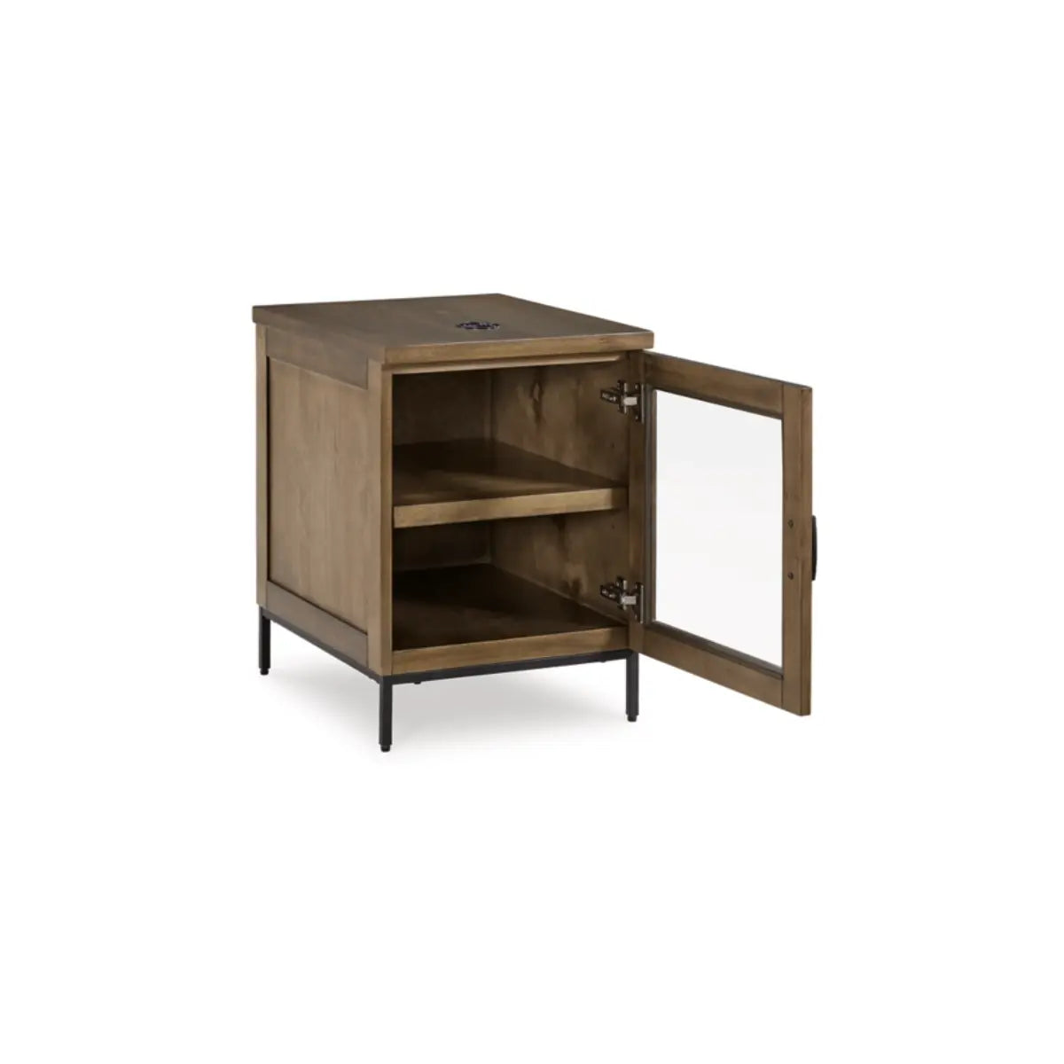 Conçue pour le quotidien, cette table d'appoint complètera avec élégance votre salon contemporain et décontracté. Vous adorerez l'ambiance raffinée et décontractée de sa finition contrastante marron moyen et de ses pieds noir mat. Rangez et exposez vos objets de décoration derrière sa porte vitrée. Et pour plus de fonctionnalité, un chargeur sans fil libère votre table des câbles encombrants.