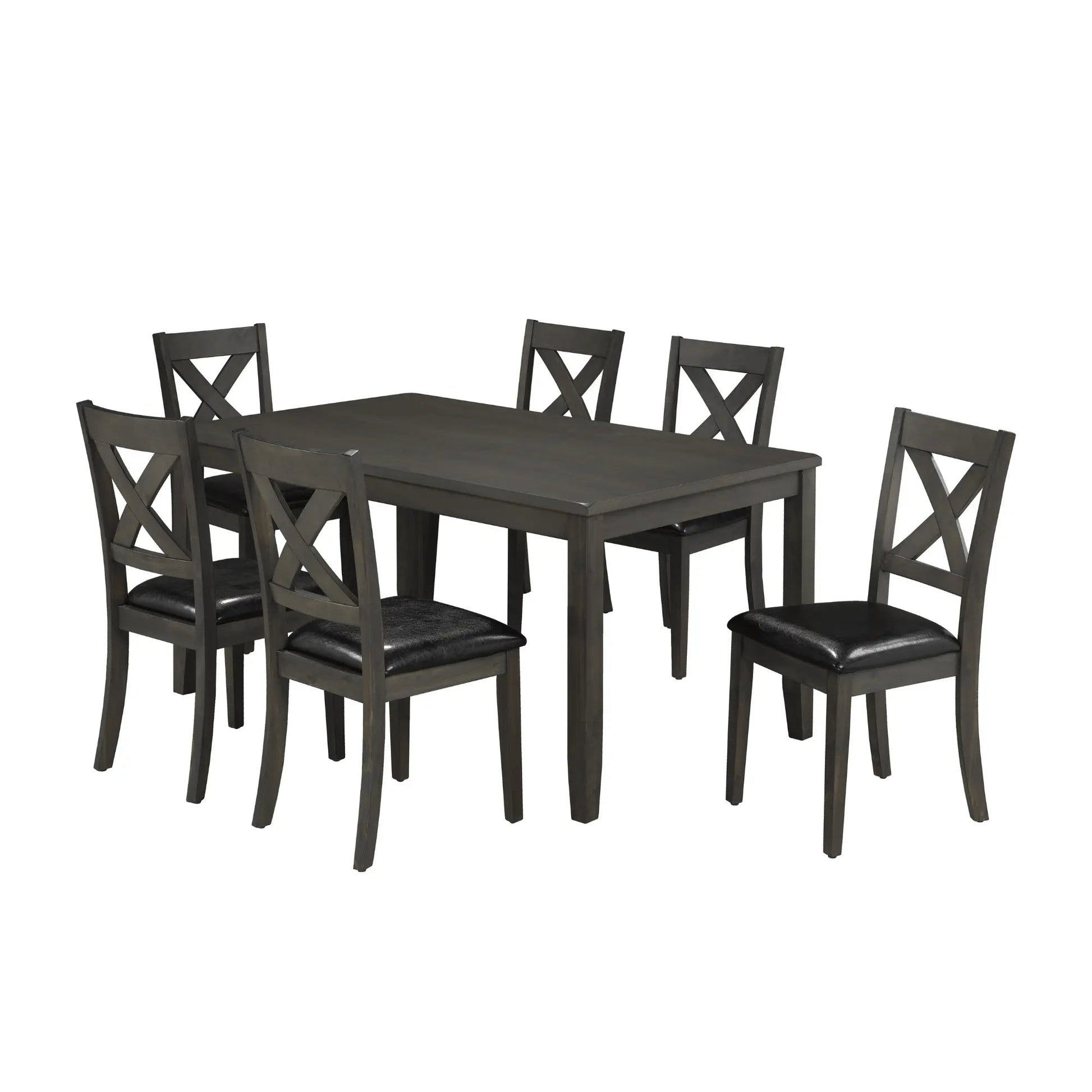 Avec sa palette de gris contemporaine, l'ensemble de salle à manger polyvalent Eastwood s'intègre harmonieusement à tout intérieur moderne. Composé d'une table et de six chaises, cet élégant ensemble de sept pièces offre un espace généreux pour des repas de famille décontractés ou des dîners élégants. Les structures de la table et des chaises sont fabriquées en bois massif et placage de manguier robuste, résistant à une utilisation régulière. Les assises confortables et rembourrées sont recouvertes d'un élégant similicuir facile à nettoyer. Conçues pour offrir un soutien optimal tout en attirant l'attention, les chaises à dossier en X sont une version élégante et revisitée d'un classique de la ferme.