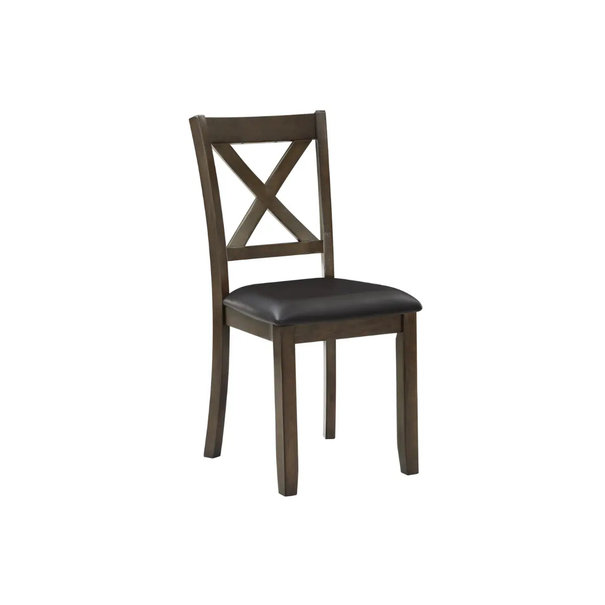 Conçue pour votre coin repas décontracté, la collection Hazel, au style transitionnel, s'intégrera parfaitement à votre décoration intérieure. Les chaises à dossier en X et à structure en bois sont dotées d'une assise en similicuir marron foncé qui s'harmonise avec la table assortie. Cette collection de salle à manger cinq pièces peut accueillir quatre personnes et est proposée dans une finition brun anthracite sur placage de bouleau.