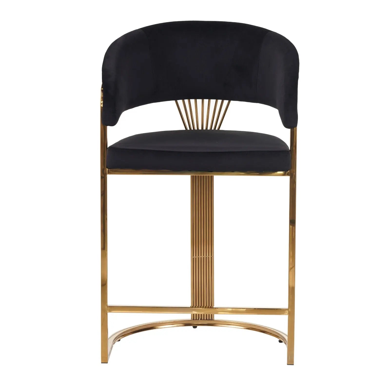 Tabouret de bar Porto Luxury en velours noir et or, pieds dorés B251